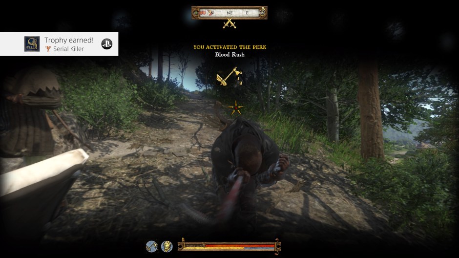 I played Kingdom Come: Deliverance with a good heart for the first several hours until I began encountering enemies more frequently and I found my armor options were weak and I was surrounded by valuables and potential treachery enough to warrant theft. So, you might’ve noticed I haven’t really talked much about gameplay yet and the issue of gameplay is where the game loses a full recommendation from me. Yes, I love immersive simulation games and I’ve played hundreds of hours of Chivalry: Medieval Warfare just for the sake of old fashioned medieval combat so… this game was supposedly right in line with my interests. The survival elements really only boil down to Minecraft to be honest, where you need to eat some meat once a day, and with certain perks selected you have to sleep once every two days. Wait, so what is the gameplay? It is basically first person The Elder Scrolls: Oblivion with the stance/targeting system of For Honor/Chivalry melded in some respects. The combat is made simpler with practice as you’ll gain perks and each perk selected, regardless of what it is, will earn you an advantage in combat. By the time you finish this game you can literally just poke at enemies heads and stab away until they all fall dead. A well timed poke to the head can instantly kill/knock out most enemies depending on the quality of their armor.