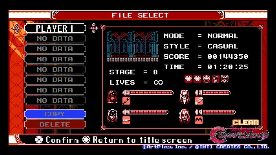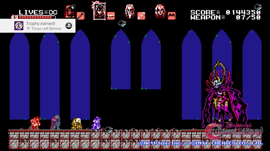 Though I only spent about 4-5 hours total with Bloodstained: Curse of the Moon it served it’s purpose and argued it’s value well enough. The NES style graphics and gameplay, complete with hidden final boss/stage, amounted to no great nostalgia for me outside of a general love for Castlevania. It is a great primer for Bloodstained: Ritual of the Night and a reasonably fun diversion. If I had to truly crap on any on part of the game it’d be Stage 8 and the Mega Man 2-esque “Quick Man” chases through the level that lead to many deaths. This level was the reason I switched to ‘casual’ mode because the stage is entirely trial and error from the start. I’m actually more hyped for Ritual of the Night because of Curse of the Moon and I figure that is a job well done for ten bucks.