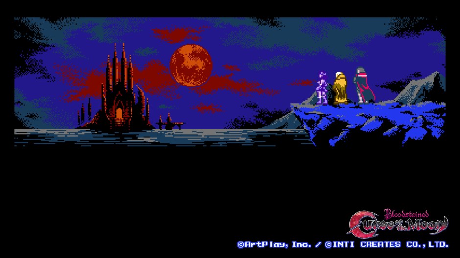 Bloodstained is Koji Igarashi‘s crowd-funded spiritual reclamation of the Castlevania series he helped modernize back in the mid-90’s with right-hand man involvement in the classic Castlevania: Symphony of the Night and producer of each main entry afterwards from 2001 until 2011. With the Kickstarter campaign for Bloodstained: Ritual of the Night receiving incredible support from fans and a rare positive endorsement from the cynical, bland annuls of popular video game journalism Igarashi‘s team were able to get increasingly ambitious with their rewards with posters painted by Yoshitaka Amano (Vampire Hunter D, Final Fantasy series), a rogue-like dungeon mode, and full voice acting. One of the later additions was a ‘mini-game’ in the 8-bit style which turned out to be Bloodstained: Curse of the Moon.