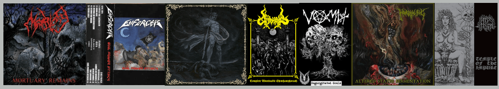 This Concepción based old school death metal band formed in 2013 from members/ex-members from Sadistic as well as black metal projects Perversion Flame and Necrolatría. Mortify‘s style is very straight forward as they focus entirely on cryptic old school death metal with great love for early Death, Morgoth, and Exmortis. Although the album kicks off with some typical sounding tracks around “Inner Torment” you start to see there is much more thought put into the guitar work than typical and the bass presence cuts through when they venture into more ‘thinking man’s death metal’ modes. I’d liken the appeal of ‘Mortuary Remains’ to that of records like Loudblast‘s ‘Sublime Dementia’ or Mercyless in terms of creating a unique mood with a rotten, brutal old school sound.