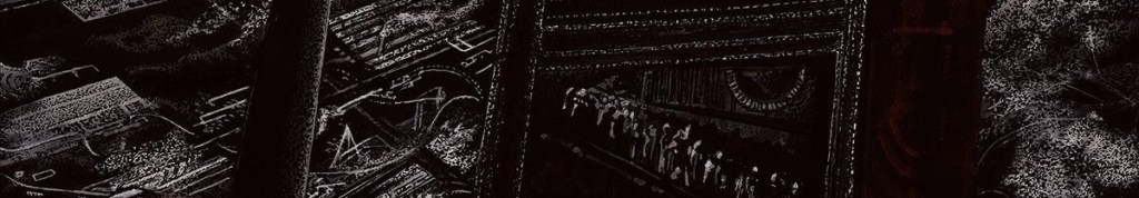 The torrential narrative of ‘The Furnaces of Palingenesia’ hits a fever pitch and furor beyond Side A where “1523” precedes the creation and dehumanization of the crucial Enemy of the System and our new History. Sartre’s La Nausée comes to mind if only for its exploration of freedom and isolation specifically the “condemned to be free” adage, which might seem a bit superficial but does appear to be an important root for mental space that Deathspell Omega create poetically. The very idea that human nature may be entirely malleable and not innate along with the rejection of a presupposed universal morality (positing it as a mechanism of control) gives some sardonic footing to a Foucault-esque view of the human animal. “Sacrificial Theopathy” is a sure first apex of complexity in terms of theme as the Enemy is created and then all manipulations are again detailed along with intent. The Enemy is so clearly defined and so divided that a zealous surety becomes blindness, this is the ultimate ‘evil’ and should in every sense be the most frightening realization that’d potentially come from this work. You may not know your enemy but you surely hate them, and you’re sure they hate you… aren’t you? Though I’ve not spoken of the compositions much thus far it is Side B that is not only the most profound and complex portion of the experience in theme but also a grand set of departures from and rescission of Deathspell Omega‘s modus. Yes, they are grinding and chiming growls often on pace with Side A but, a collapse is expressed in both manifesto and composition. When the fires of idyllic progress leave men with empty hands and deserted resources a world of dust and ash dries all corpses of their water. Civilization is a fatal process on “Absolutist Regeneration” and therein lies the first layer of clearest meaning to cue the listener for re-examination.