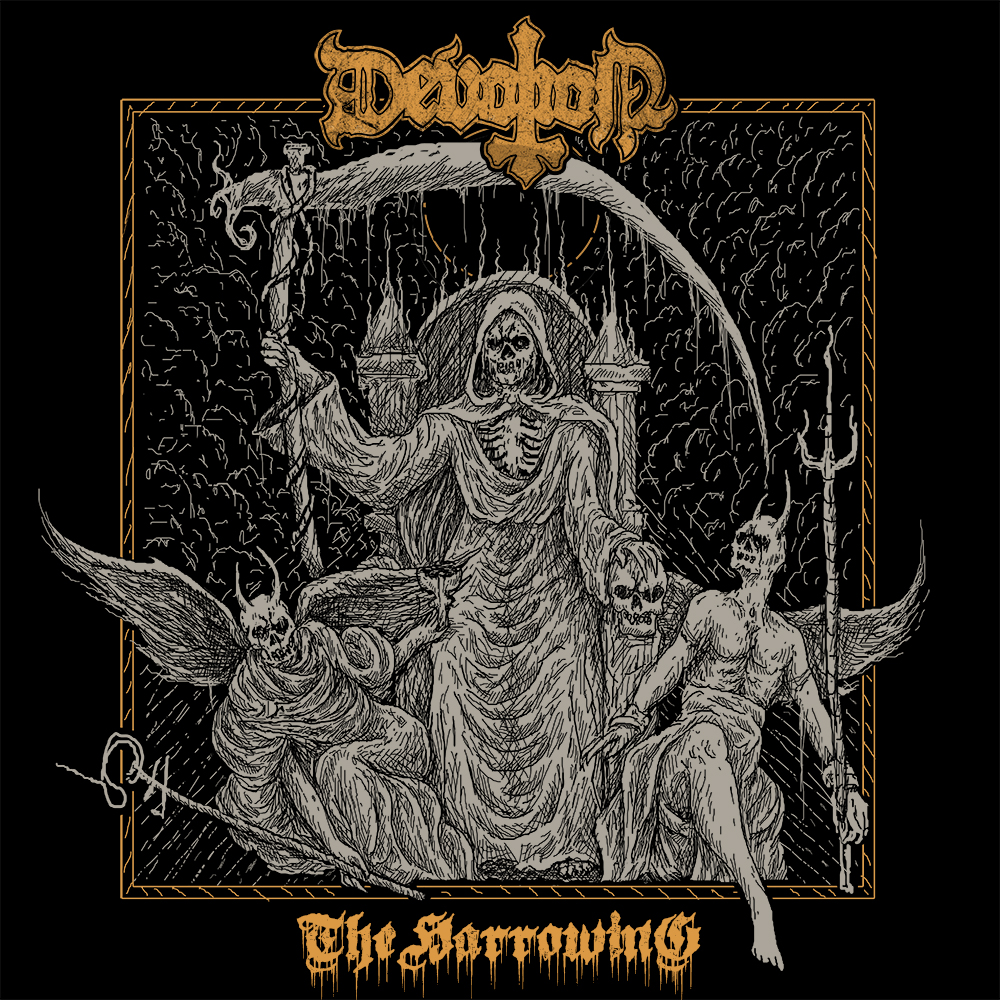 An induction of a necessary new mutation, equally concerned with our forgotten past yet differently staffed, this second full-length from Valèncian ‘old school’ death metal project Devotion finds its relation to their early 90’s fixated first phase via sustained stylistic concept. This despite some of its lead actors having passed-on or, missing from the plot. Evolving identity that yet retains the core spirit of the original concept is naturally desirable within the realm of retro death metal yet we rarely come across such changes as found on ‘The Harrowing’ those which manage to be eventful, purposeful and arguably a better formed result than a predecessor. Though the Spanish quintet manage to sound like a different band in the process of their greater transformation ‘The Harrowing’ presents these newly seated major drivers (two new guitarists, lighter keyboard use) with a rugged-yet-sophisticated rhythmic churn that still invokes an era-appropriate sound with the flair of classic death/doom metal always nearby.