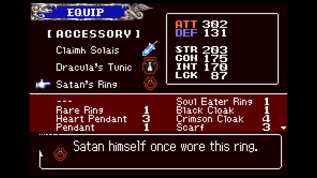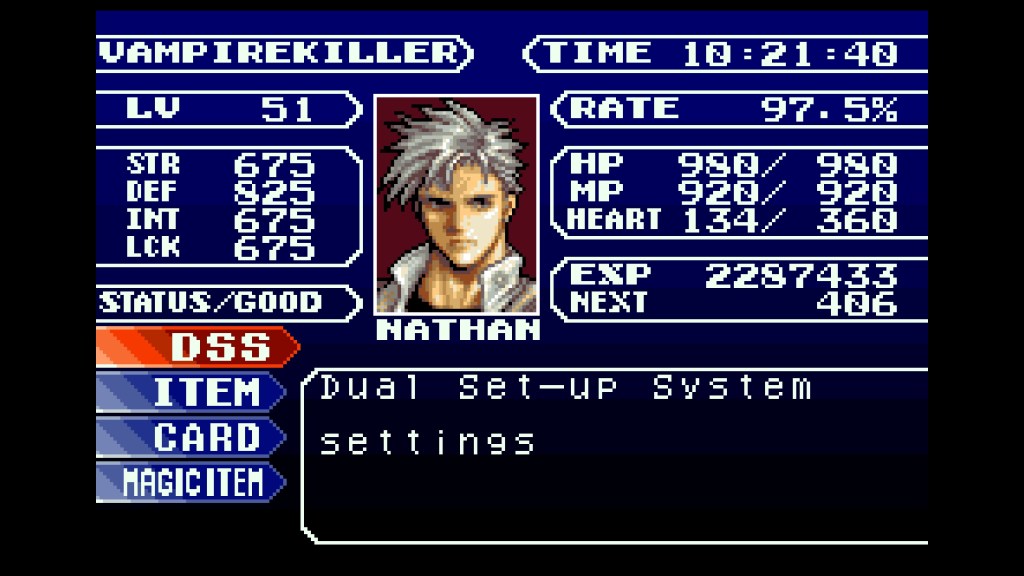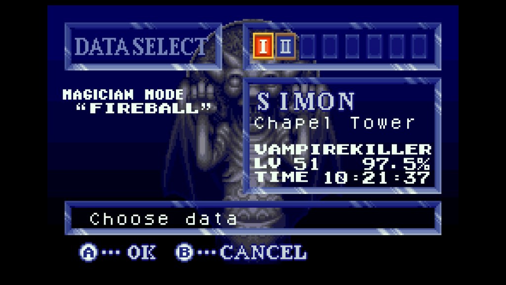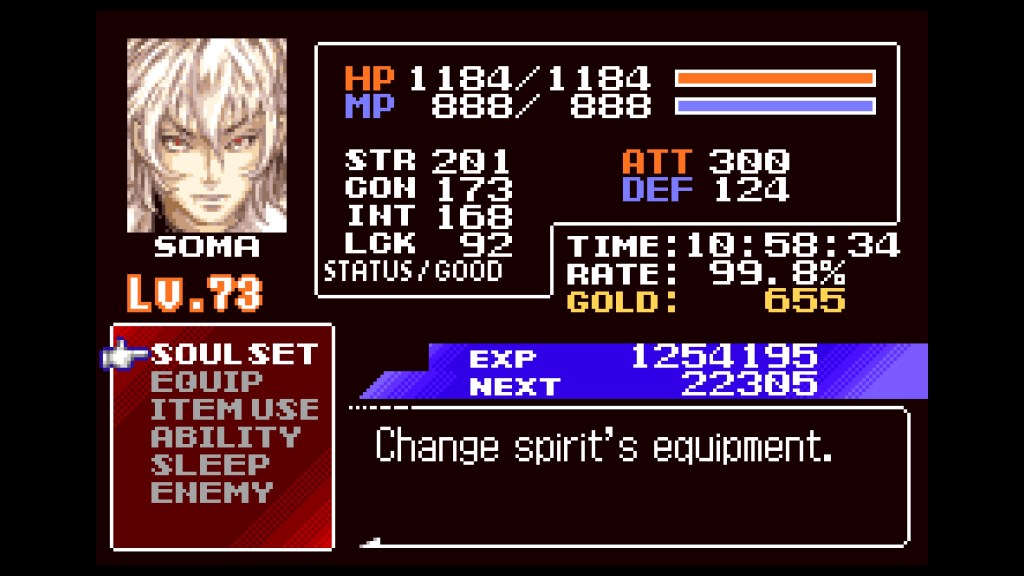 “The quality of the music was sacrificed for the quality of the graphics.” is probably the most mind-boggling thing I have ever encountered in the years I’ve spent gathering information about this game. In fact, yes, the music is horrendous and would be even for an early Super Nintendo game but the graphics are awful, too. Though I didn’t have the foresight to screenshot any actual gameplay, I’ve got playthroughs of each game up on YouTube and you can see the main issue right away: Juste Belmont looks like if they’d drawn a Lord of the Rings (SNES) version of Alucard from Symphony of the Night and outlined him in bright blue. Rest assured this game does everything it can to invoke the look of that 1997 Playstation/Saturn game without any particular success. Harmony of Dissonance was in production in tandem with Aria of Sorrow to start and I don’t necessarily understand how this one went so wrong and the next went so well. The aesthetic, the story, the castle design itself, and the music — All of it forgettable trash. Although I wouldn’t suggest skipping this game it is one of the worst Castlevania titles ever made and the only one that truly deserves a remake of some kind. The ability systems here are novel enough but far more limited than Circle of the Moon as you collect about 4-5 spellbooks which allow you to use magic points to cast specific spells depending on which sub-weapon you have equipped. Switching between the two identical, but very small, castles means a ton of backtracking to the point that it seems like they were doing all that they could to juice the small number of areas that could fit on the cartridge. Don’t listen to a single idiot out there suggesting this was an improvement over Circle of the Moon, nah, fuck off already with that.