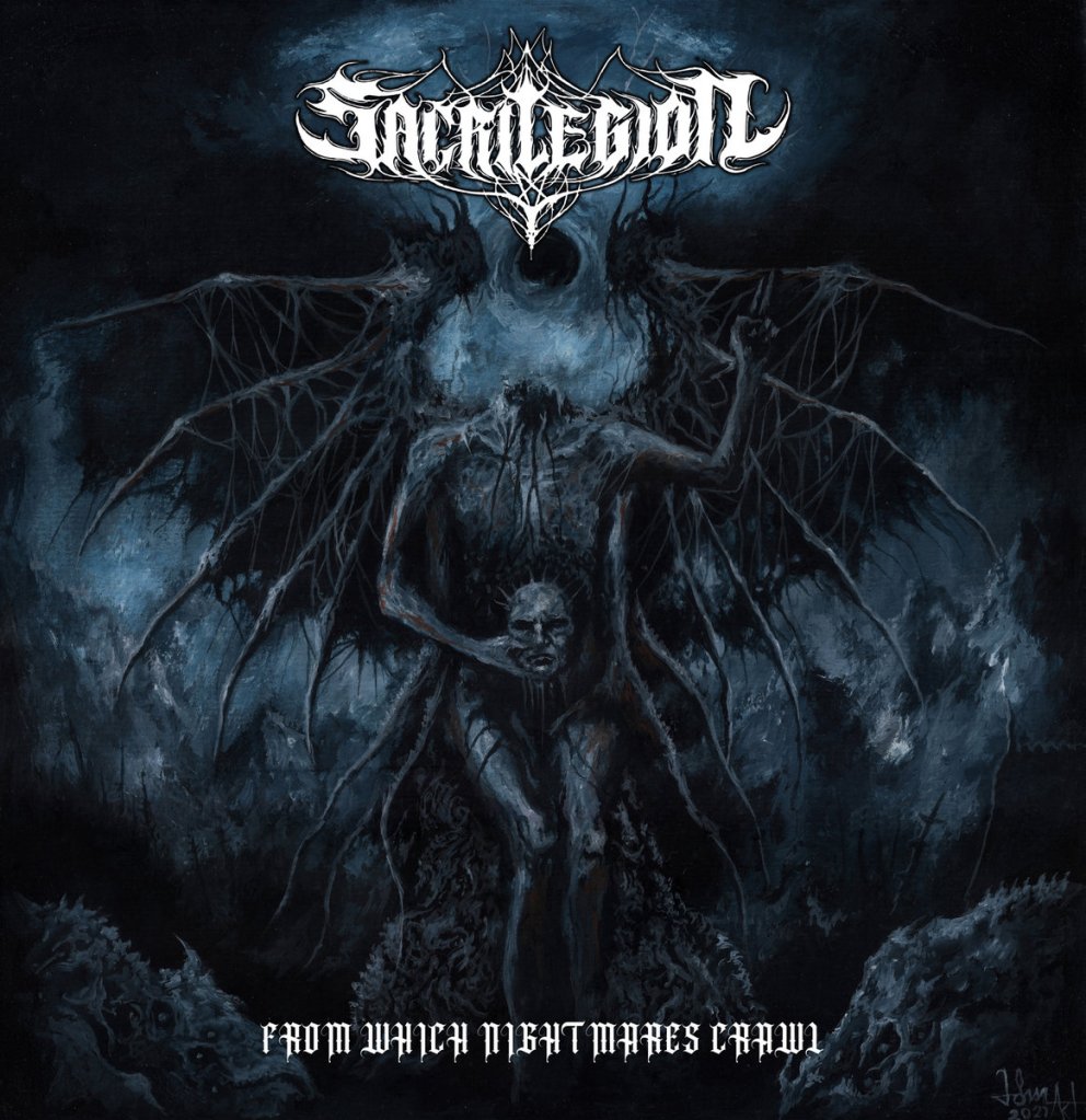 Riffing in tongues. — Sold! Right? If you’ve spent as much time as I have digging through the heart of melodic death metal looking for bands that’d retained the “edge” of classic death metal and incorporated pronounced melodicism in unforgettably stylized ways then you’d quickly recognize the rare breed which breaches the surface on ‘From Which Nightmares Crawl‘. If the mere mention of a record like ‘Invidia‘ has you geeking out of your mind you’ve probably the same amount of respect for those long-lost and much later rediscovered deeper cut nodes of melodic death metal. This is clear enough indication that Carlson and crew are coming from a place of well-investigated taste, a dark melodic-yet-brutal obsession showcased throughout their debut. That said, I don’t know that they’ve come out of it having done more than prove that they can meet a very high standard of stylized performance within a by default glorious niche. It’ll be a stretch for some to consider the full listen of this LP inconsistent while intrenched in the long-lasting glow of induction but with repeated listens I’d found the pairing of the glum, somewhat aimless by comparison kicking of “So Envenomed, Enshrined” with the spirited “Legacy of the Impaler” does a fine job of showing how average some of these ideas land in their somewhat unrelated threads and how brilliantly others line up. Though not everything Sacrilegion finds the same level of intrigue, they could’ve cut one or two pieces, the full listen ultimately convinces that it is worth repeating.