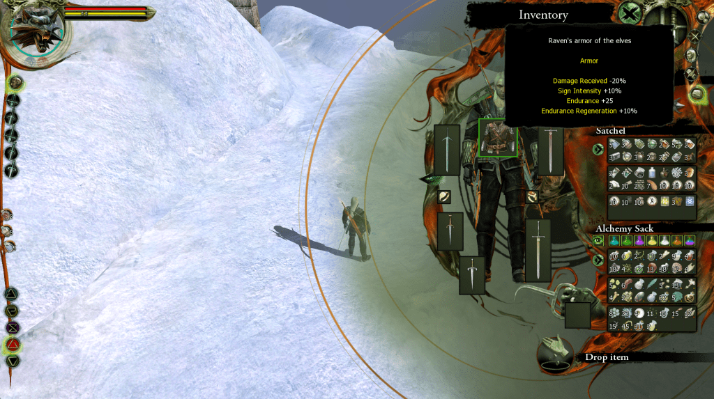 Some random notes on this “definitive” playthrough on my part: Equal distribution of skill points among the three fighting styles for each sword is key to remaining versatile in fights but you can generally focus on fast and group styles for Silver sword to start and heavy/fast styles for Steel sword before branching out. Main stat distribution is by far more important since it unlocks access to combinations in combat as well as the use of more than Signs. Alchemy makes the game a lot more fun but the big mistake folks make is using Blizzard early on, the game doesn’t give a great explanation as to how to time your attacks when using it and this actually increases the difficulty of combat. On harder difficulties always turn in your collection quests before brewing potions, you can easily miss out on a quest or waste a ton of time making a friggin’ Cat potion out of rare monster hunting spoils and having to leave the area or rest to respawn mobs. As for Signs, Igni significantly reduces the difficulty of combat due to its DOT and Aard is still the go-to Witcher dealie but the game has always been well-balanced towards the use of the other Signs and they are easy to find early in the game if you know where to head. The use of Yrden and Quen can significantly change your playstyle and are almost necessary on higher difficulty where the game demands slightly more strategic gameplay with limited resources.