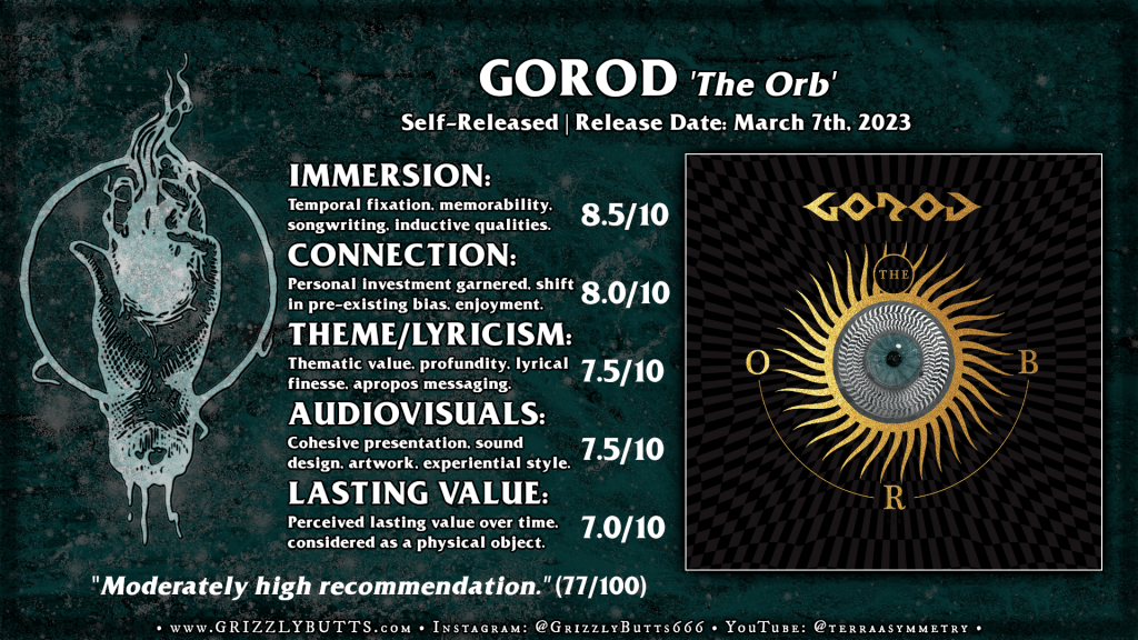 The Orb‘ was introduced by its title track, “The Orb“, which is perhaps the catchiest bit of alt-metal they’ve ever attempted, more than a hint of change persists in the air thought this pieces is not necessarily a full indication of what the bulk of the album sounds like. Still, the listening experience generally does move in the direction implied, a sort of early 2010’s transitional Gojira-esque feeling which is not far outside of their wheelhouse based on more recent material. This more-or-less opens the floodgates for a very accessible prog-death record as we touch upon “Savitri” and “Waltz of Shades” which will undoubtedly feel far too commercial metal in style for the old guard of tech death who might still recognize the Gorod name. If you do make it to the end of the album, yes, that is a cover of The Doors‘ “Strange Days” and despite how stiff and strange their interpretation is, I’d appreciated it. If anything it left me wondering why they’ve not incorporated more keyboards into their gig elsewhere. All things considered I don’t believe ‘The Orb‘ manages to make any too outrageous choices within its foil and won’t ultimately land a “love it or hate it” response from already attentive fans. Just don’t go in expecting them to be stuck on what they were doing two decades ago.