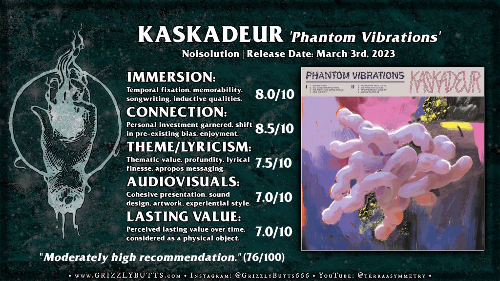 Perception, communication and human absurdity factor into the growing pool of themes which Potsdam, Germany-based progressive rock quartet Kaskadeur bring to their ~second full-length. Active for quite some time as Stonehenge but now two albums deep into this freshly rebranded entity we find their efforts still built upon stoney rhythms and eclectic rock but now much more focused on a modern-yet-ancient feeling prog rock exuberance. Think along the lines of Wobbler to start but with some math rock quickness, jazz fusion influences, bluesier breaks and a general sense of overactive minds detailing each of these pieces. Most readers will not have any particular interest in this style but I think folks could easily be won over by songs like “Join the Cult” and “All Comes From Nothing” if there is any interest in modern/eclectic progressive rock. Bonus points for the album art looking like a bundle of melted pink dildoes.