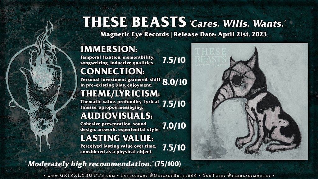 Again, bad album art per my own taste but another great kinda noise rock-adjacent record from a band who’ve been working up to a bigger release for some years now. These Beasts are a Chicago, Illinois-based trio who present a sound that lands somewhere between The Cutthroats 9 and -(16)- which has few true compatriots at the moment beyond Portland’s Ils. Their crossover between mid-90’s sludge metal/noise rock fuss and circa 2011 Red Fang-esque tension has an appropriately stoney edge to it but, definitely a disturbed side to its register per the vocalists increasing focus on hissed, wrathful performances on a few songs. If you grew up listening to records like ‘Drop Out‘, definitely tie this one on.