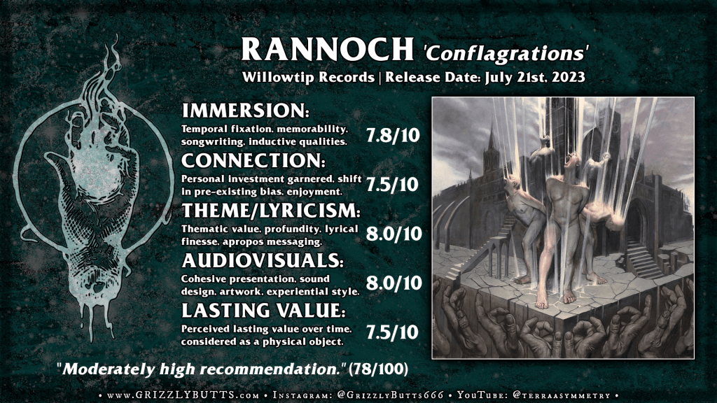 West Midlands, England-based progressive death metal trio Rannoch return after just a couple of years with what sounds like a direct follow-up and refinement beyond their 2020-releast ‘Reflections Upon Darkness‘ upholding the innovations and adjustments they’d made over the course of a long silence beyond their Meshuggah and Gojira-inspired debut ten years ago. While I can admire the strong production value gains made, the increasingly varietal infusion of modern progressive metal into their sound, and the finely curated artwork in hand I’ve not been able to enjoy anything with that ‘Chaosphere‘ and/or ‘Nothing‘ vibe since those’d released and that sense of bonking, down-tuned throb within the rhythms is a big part of Rannoch‘s sound. That said I can appreciate and admire the machine they’ve build and the insertion of cleaner vocals harmonies, synth/keyboard infusion and more chilled sections to steady the flow of ideas. The title track is probably best representative overall, check it out of this is more your kind of thing.
