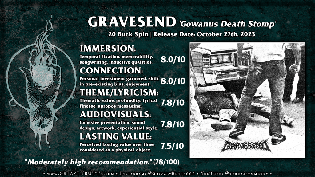 So, why not a bigger score and a longer review? This one might’ve hit differently if the cycle-through wasn’t so blazing fast or wasn’t so nearby the pressure-cooker of the end of the release schedule. This one feels like it was in the chamber and they had to jam on it as soon as they could, possibly because they’ve been prolific otherwise and that ain’t a bad thing but it’ll take another year to process on my part. My notes are few and not all that nuanced: Production values offer more clarity between the guitar and bass guitar tones, doomed riffs are intense but the punkish movements are less interesting, and some of the leads needed more time to cook or are served a hair too raw. I’ll consider less of a “hot take” on this record before the end of the month/year.