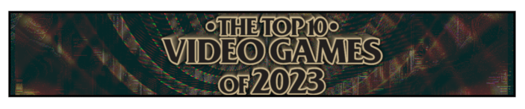 THE TOP TEN VIDEO GAMES… of MMXXIII represent a brief respite from the mediocrity of the artform, a handful of substantive (or just plain fun experiences) within an ocean of exploitative horseshit. Before we get to the best, the Worst Disappointments of the year alongside the Best Remakes and Remasters might account for some games I’d played but didn’t end up ranking. Otherwise once the Top Ten shows up it only features games I’ve completed at least once and doesn’t include multi-player only or massively online games