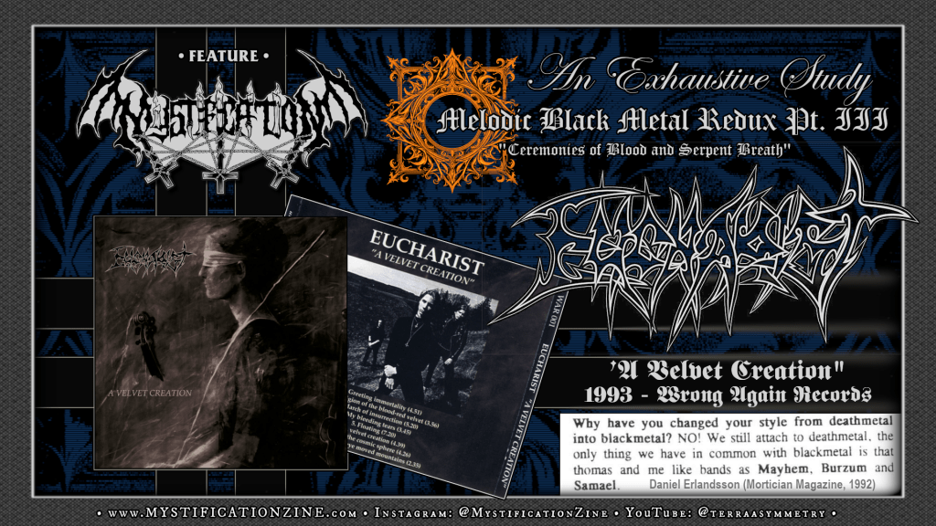 • AN EXHAUSTIVE STUDY: Here I present Part III of a series of a comprehensive sub-genre analysis features that began back in 2015 (Technical Thrash Metal, Melodic Hardcore/Skatepunk) on another site. This second pass for Melodic Black Metal will be a more comprehensive redux of the series which began back in 2017 and generally completed in 2018 wherein seven enormous entries detailed key releases from 1991-2005. It is necessary to rewrite, ‘remaster’ and approach this subject another time due to the old columns no longer linking to their album artwork, most of them weren’t very thoughtfully written, and the type of posts used were not created for mobile readership rendering them impossible to read. This will not be a plain recreation of that list but rather a more complete, far more in-depth format which makes less of an effort to draw the line between sub-genres and instead aims to better understand the delineation between melodic black metal and the general evolutionary origin of the sub-genre next to many others.