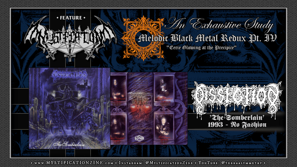 Readably consonant, stretched into sophisticated movements and broken up into easily parsed progression ‘The Somberlain‘ was a masterful step taken for the forced evolution of death metal, a malevolent language for the yet indeterminate conclusions of the Swedish melodic black/death metal zeitgeist forming to arrive upon. As the second generation of death metal in the country reached a collective state of album readiness and innovation throughout 1993 Dissection basically had the last word when it’d been most crucial, though we find plenty of other very talented musicians arriving upon similar concoctions nearby. Put simply, ‘The Somberlain‘ had songs, memorable pieces which might’ve been born out of the competitive technical showcases of compositional aptitude among their peers but ultimately arrived upon the simpler expression of black metal to allow for a timeless tuneful menace which outshined most of the brainy, artsy, and brutal territory covered nearby.