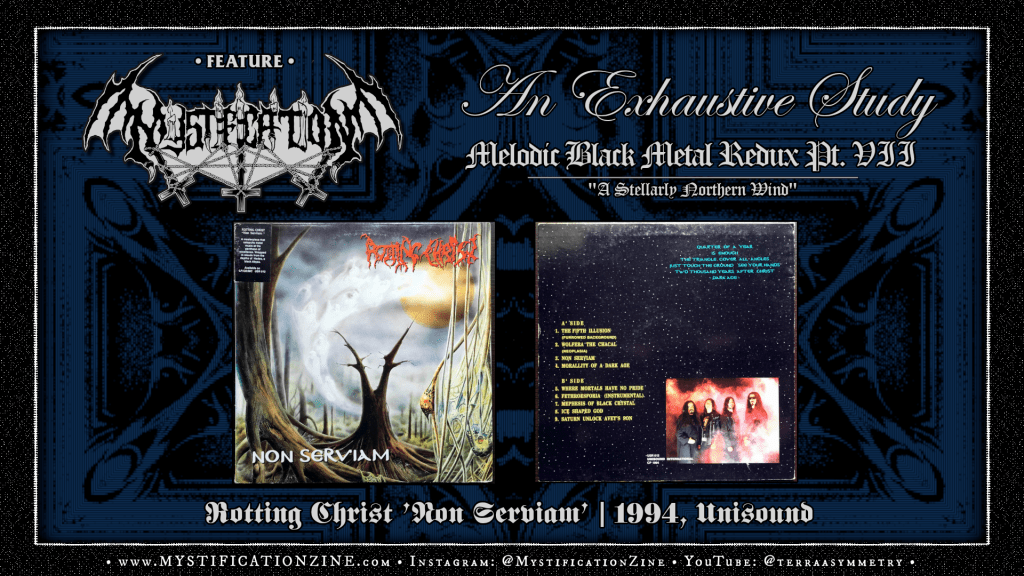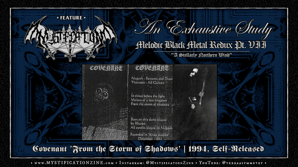 This is the final entry in “Season 1” and to finish the thought 1991-1994 of this version of An Exhaustive Study: Melodic Black Metal in redux a cumulative ‘essentials only’ column will be the main feature of Mystification Zine Issue IV. This will only concern itself with prime selections of what I’d consider canonical and important examples of melodic black metal in these formative stages. Before the likely much longer Season 2 (1995-2000) commences we will briefly shift gears to another topic. Please note that if the readership just isn’t there for these types of features I will simply pivot to other ideas, no guarantees.