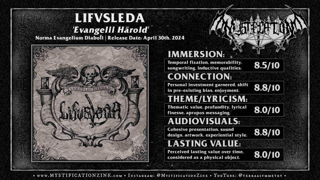 The third full-length album from LIFVSLEDA continues to work its way through the dark underground realms of Swedish black metal in its own idiosyncratic yet well-articulated methodology. Sure, if you are a fan of Sorhin and Arckanum you’ll understand and enjoy the death-worshipping sensibilities applied here but for me there is something spiritual yet nightmarish about this album, a thread of torment runs through it which I’ve yet to fully define beyond its pulse. Otherwise I think I like the overall production of this record beyond the first in terms of the guitar tone, it is a bit quicker to immerse into these mazelike yet tunefully violent songs. I’ll have a more complete and thoughtful set of things to say about it once the full review is finished.