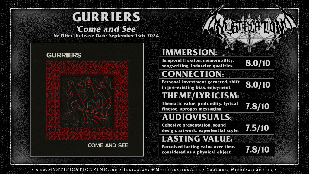 Noisome alarm-ringing Irish post-punk quintet GURRIERS haven’t gone unnoticed and sure thing, the comparisons to a certain era of Idles are kinda fair when browsing through some of their singles but ‘Come and See‘ doesn’t just do one thing and its accessible qualities mix well with some level of grit herein. Granted the post-punk revival level energy, the less polished face and general fusion of the band lend this record a major point of charm which is exactly fitting for a debut LP. I dunno if they’ve got a knack that is so wildly different from what is out there today, some of the bass-driven grooves are both infectious and unique enough, but the greater appeal comes with the whole of the album experience. I didn’t get the fuss over this album either to start (re: bland tracks “Sleepers”, pointlessness of “Interlude” etc.) but there are far more songs that stick than those that just flop past. I dunno if there are too many serious post-punk/indie rock heads who’re after this level of noisome ’79 frantic energy that’d missed this album this year but I definitely wanted to mention it.