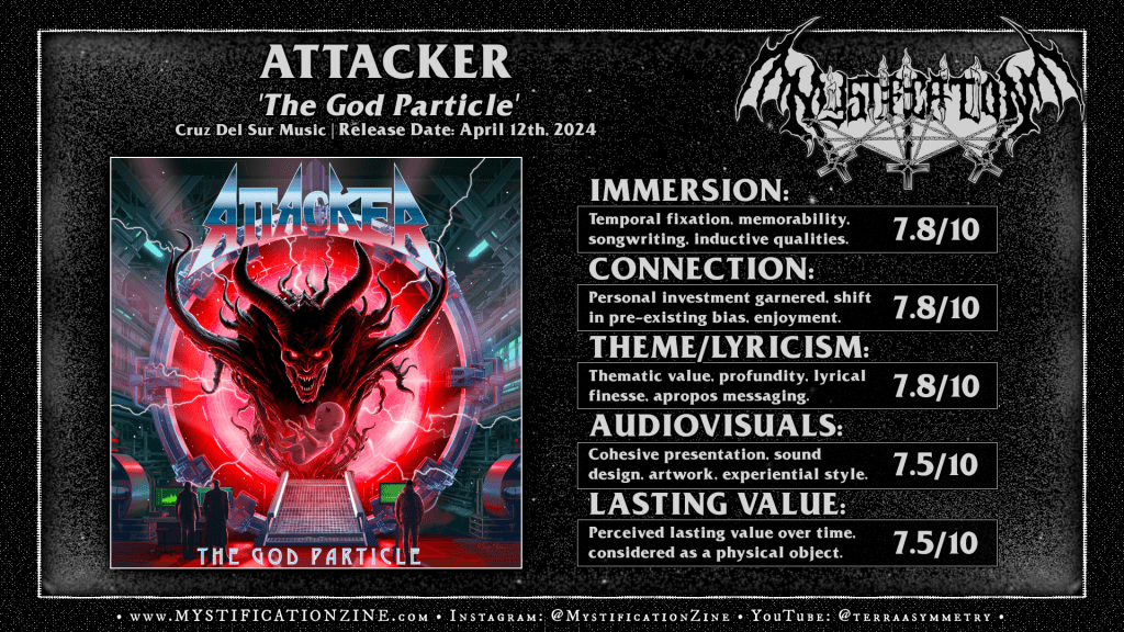 Weehawken, New Jersey-borne quintet ATTACKER are probably best known as a watermark for United States power metal per their Metal Blade released debut ‘Battle at Helm’s Deep‘ and while the first five years of their development is still of course notable they’ve been revived and at it for ~24 years since, having released five full-lengths in that period of time. ‘The God Particle‘ is their eighth overall but the fourth with vocalist Bobby Lucas (Reverend, ex-Morbid Sin) up front and for my own taste his voice has been the major point of continuity for their last several albums, more-or-less building up to the particularly sharp result of this album. While there are many groups one could point to from a certain era which also define USPM in some way the common bond, or, influence tends to be Judas Priest‘s transition into the 80’s, not that this album sounds like ‘Killing Machine‘ exactly but that the lineage of this sound should be rousing to folks who appreciate the core of what drives groups like Jag Panzer, Liege Lord or Agent Steel even if that implies something more thrashing than this actually is. As is the case with most all of the items I’ve selected for this list you’re getting pure, un-fucked with heavy metal here and a solid chunk of it all in a row.