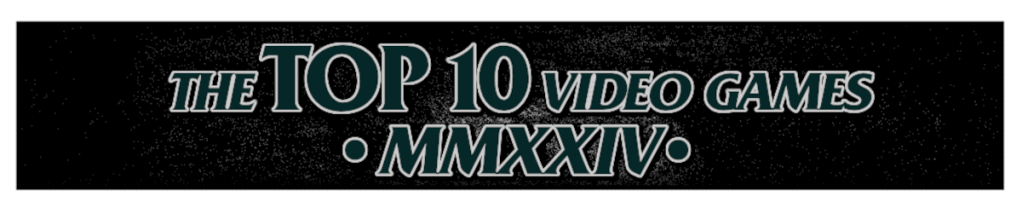 THE TOP TEN VIDEO GAMES… of MMXXIV represent a brief respite from the mediocrity of the artform, a handful of substantive (or just plain fun experiences) within an ocean of exploitative horseshit. Before we get to the best, the Worst Disappointments of the year alongside the Best Remakes and Remasters might account for some games I’d played but didn’t end up ranking. Otherwise once the Top Ten shows up it only features games I’ve completed at least once and doesn’t include multi-player only or massively online games