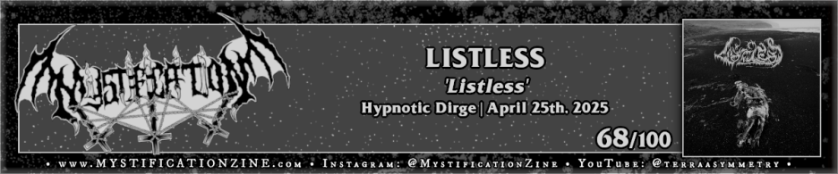 LISTLESS is a solo project from Vancouver, Canada-based musician Aidan Crossley who is best known as the guitarist/vocalist for post-black metal band Liminal Shroud. On ‘Listless‘ he takes on the uncertain realm of depressive black metal, or, where the tentpoles for the sub-genre interact heaviest with dark metal and depressive rock traits. The intent here is something expressive rather than purely wounded and distant, so, while there are moments which resemble Woods of Desolation (“Bloodstained Memories”) to my ear this record generally speaks more to classic Lifelover in a less bloodied-up way (see: “Burning Sky”). What is missing here is the jagged, unlistenable edge of the underground, the over-dramatic ramping of desperation that’d birthed this sector. That isn’t to say it isn’t a solid album as the tone of the album matches its title but man, hitting “Futility” which is I believe just a couple fighting/breaking up over an instrumental just completely takes me far and away from what interests me about black metal or music in general. I hate to be the “Depress me, bro.” guy but I wasn’t feeling it.