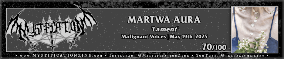 Poznań, Poland-based quintet MARTWA AURA return with what is probably my least favorite, or, most unsettling album cover art of the year via ‘Lament‘. The music itself is initially rowdy yet bleak black metal which quickly begins to hone in on its own veering dementia, a claustrophobia inducing roll through largely fast-battered and swerving black metal grooves which make good use of both moderne and classic guitar temperament. The more dissonant they veer within songs like “Lament Drugi” the better whereas others trot toward blackened death brutality for better or worse. When they break up the wallop of the first half around “Lament Czwarty” things become a bit more compelling, they begin to take a few deeper breaths but overall these folks are locked into their attack to the point that the momentum cannot be broken. I don’t know if the drummer needed to hammer the fuck out of every second of this album but it was a solid enough beating either way.