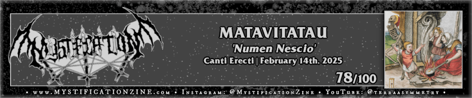 Ghent, Belgium-based black metal quartet MATAVITATAU have devised some admirably flung nuance, their own ear-blurring brand of slow burnt ancient spellcraft here within these Latin-writ and eerily stepping pieces. ‘Numen Nescio‘ initially comes across tentative per its pacing, particularly via opener “Posse Mori” but this eventually resolves into something Urfaust-esque in sprawl (via “Elicior Tenebris”) as they beguile with each dramatic telling. The longer each thread takes to unravel the more interesting the context at least in the sense that the lyrics (in Latin) are pulled from the ancient world and given their own moment to depict here via largely gloomed-out vibes. While the guitar work has a sort of tentative atmoblack drawl to it it usually hits, for example “Calcanda Semel Via Leti” in particular goes flying as far overboard as possible and still reels in a decent riff.