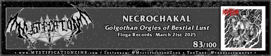 The best is saved for last here as we hit upon actual riffs here via the debut full-length album from Athens, Greece-based black/thrash metal trio NECROCHAKAL who channel the late 80’s Brazilian and German scenery of old as part of their suggesting inspiration. This is foremost an imposing, hard-as-nails extreme thrash record built around ripping speed and tight performances whether they’re cutting through a two minute flamethrower (“Scapegoat Crucifixion”) or the bestial black abyss of “Orgies of Lust on the Mount of Skull” there are no smoke and mirrors applied to their action. I think I’d hit “Satanas Rebirth” and I was already in, not only for the guts-ripping quality of their path through the main riff but the sharp production values applied, particularly the clarity of the rhythm section. Otherwise the appeal here is again the riff and their work is more than worthy in its attack.
