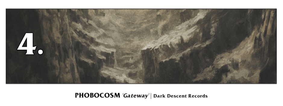 “Along their enduring path toward acceptance of death as foregone Montréal, Quebec-based death metal quartet PHOBOCOSM take prolonged detour in examination of mankind’s most historic delusion of life everlasting, or, in Christocentric terms “eternal life” and how its promise and pursuit has distorted the human condition towards cruel acts en masse. This diabolic fourth full-length album serves as both addendum and showcase of consistency of vision within their career-spanning dementia as ‘Gateway‘ carries trait and timbre from their third record atop unused compositions dating back to their beginnings, building vital entrant from both old and new assertions.“