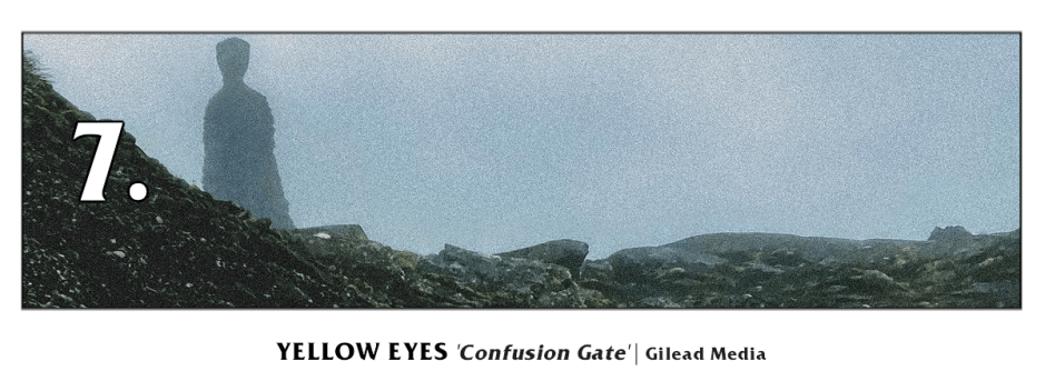 “Casting visions of gods-embattled hallucinatory terrain upon the listener New York, New York-based post-black metal quartet YELLOW EYES return to depict woe-bringing hexation and celestially flung torpor via this biggest yet undertaking and seventh full-length album. Once again dancing three steps to the right and one hard pivot to the left ad infinitum their work on ‘Confusion Gate‘ deals in higher volumetric gusts of their uncertain signature where beauteous upsurge and ached-apart disassembly create a unique landscape given to melancholic surrealism. Their knack for side-swiping any too-typified stance with interruptive, variously melodious and/or dissociative breakthrough lives on, or, thrives beyond most past work in this case as they’ve given themselves enough room to stretch and seizure as needed.“
