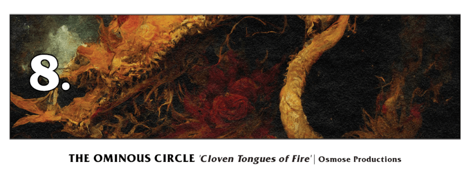 “Distributed by the sparking plasma of unspoken entity all disciples are simultaneously endowed with the gift of foreign speech as the unholy spirit-granted utterances of Porto, Portugal-based blackened death metal quintet THE OMINOUS CIRCLE access the diabolic on this doubly intense sophomore full-length album. Rather than rewiring their entire modus ~eight years beyond their last statement ‘Cloven Tongues of Fire‘ builds upon that foundation directly, catering to doom and malice with fresh conviction, an overall refinement of ‘ready culling serpent’s speech. Through these acts they’ve done well to represent blackened death metal in a familiar but not-so typical voice, leaning into vexing corridors of gloom while still spewing lava from every orifice.“