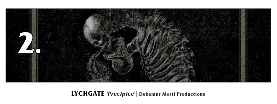 “The hive mind’s insatiable tunneling toward efficiencies cannot possibly outpace the rot produced by the greater machine, no matter how ouroboric the form taken by civilization becomes an entity of uniform obedience will always suffocate beneath the outcome. Given a view from the deeply bent spine of surreal envision London, England-based avant-garde black/progressive metal quintet LYCHGATE arrive beyond the crest of many years with a vision of tormented liberation on this accomplished fourth full-length album. Despite its time emboldened density of razor-precision’d statement ‘Precipice‘ speaks clearly, deliberately through its arc as a ~48 minute ordeal marked by Eldritch tension and beauteous grey-glowing contemplation. Though you’ll no doubt immediately recognize their work by its ‘ready well established traits the long wait between releases appears to have granted this record a thrillingly repeatable density, a compelling realm of its own to explore beyond past accomplishments.“