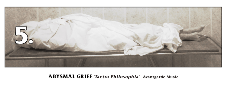 “With the choir’s red-eyed blur asway on the right and the organist aflame on the left the unnamed figure dead centre the pulpit completes their unholy trinity with his guttural vibrato, an ominous sermon dedicated to hair-raising seventh revision of the vile tome’s curse as Genoa, Italy-based doom metal trio ABYSMAL GRIEF preach the hungered call of the soil below. On the very cusp of completing their third decade of alignment these fellowes reinforce an enduring campaign of dark-black doomed delirium with a seventh full-length album no less devout in its disgust. The horror of an ancient tradition returned ‘Taetra Philosophia‘ serves to demystify all offensive prophecies fed to ailing minds via their necrotized eldritch oratorial take on Italian doom esoterica.“
