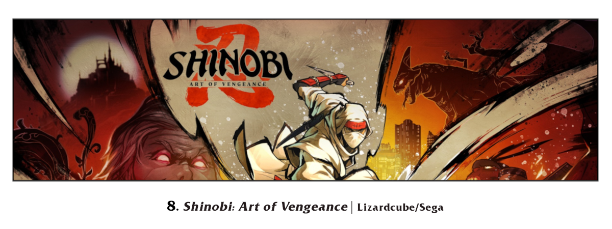 Though I didn’t discover the Shinobi series until the third canonical game released on the Sega Genesis in 1993 I eventually made a point to play all of them when I was more of a “retro collector” back in my 20’s. Though none of the series topped the third mainline game for my taste (don’t let anyone tell you Shinobi PS2 was good at all) none of them had quite as much of a focus on music or visual style. Parisian game studio Lizardcube have done a brilliant job of translating old Sega properties into fluid, almost comic book inspired animation via Wonder Boy and Streets of Rage revivals and of course they’ve done it again here in a level-based quasi-metroidvania sort of deal with optional exploration and challenges. While the game was a challenge it wasn’t so daunting that I’d felt discouraged to complete it 100% and do all of the optional areas etc. Compared to the strange nostalgia of Ninja Gaiden and Terminator 2D revivals this year this was actually a great game that didn’t play like a cheap-ass romhack.