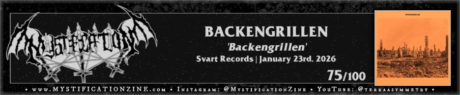 Visceral, death-driven yet not exactly deconstructive in fashioning its improvised gesturing this self-titled debut LP from Umeå, Sweden-based quartet BACKENGRILLEN promises destruction and “stupid” ugliness as an act of defiance against systems of control and oppression. Written, rehearsed and recorded in the span of three days ‘Backengrillen‘ manages a surprisingly relational stature and likely for the sake of three of these folks having featured in Refused together ’til the end but also with the inclusion of brilliant reedist Mats Gustafsson and his impossible to contain handle of the saxophone. Informed by free jazz in its partly improvised dispersal but built from repetitious punk and sludge/doom metal ritualism each of these five pieces finds their own angle to crash into the proposed combination. Highly expressive, painfully gutted vocals and damaging riffs saunter in their shouted, slowly stamped-out movement here with the exception of the jazz-punk bap found within “Repeater II” which dances in its own irregularly circling pace. Call it art-metal or freak sludge, whatever suits the moment the feeling conveyed is frustrated, carnally yanked from a place of revulsion at the very least. I believe this act is slated for Roadburn this year and their album reads appropriately built around performance, likely in support of heavy improvisational venture and I’m almost more stoked to hear/see these folks in action live than continue to be ground down by this record.