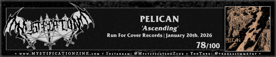 The main reasons I’d not covered Chicago, Illinois-based quartet PELICAN‘s seventh full-length album, ‘Flickering Resonance‘, last year appear hideously pragmatic in hindsight. Much of what there was to say about their return would be cribbed from my review of ‘Nighttime Stories‘ back in 2019, once again reasserting their pioneering, shaping status for “post-metal” and touting the lack of diminishing returns in their work compared to any suggested peer. Wilting away from the challenge of feeling along the walls with said album I’d missed a chance to champion their prog-lite post-hardcore mountaineer hand pulling further out of the mud and murk into scalar climb. This latest EP is essentially a 12″ single for “Ascending” an ~8 minute butt-clenching, gravel riddled trek. Though it appears to carry us toward a different tonal summit outright, perhaps a nighttime scene compared to the midday beamed exude of their 2025 LP, we do eventually land upon a sparkling peak.