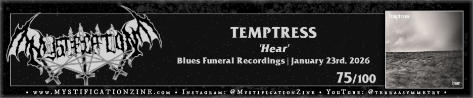 Dallas, Texas-based trio TEMPTRESS create a surreal, disconnected realm of reflection informed by psychedelic/stoner metal, post-rock and alt-rock on this sophomore full-length album. At their most kicking (“These Walls”) ‘Hear‘ resembles the warm tumbling of earlier Scandinavian stoner muse as they’ve cut away the longer song lengths of their debut, tempering those searching psychedelia loaded moments into tension addled ~5-6 minute meditations (“Narrows”, “Be Still”, “Edge”) as prime directive. The proggy chop of the riffs on “Edge” juxtaposed with the 90’s Big Muff-fed rock rippler “Now or Never” shows a band willing to extend their reach though their most captivating movements here approximate (and betray) the connections one could make between stoney sounds and post-rock informed float. I’d found this album difficult to approach, odd in its pacing overall, but tuneful nonetheless.