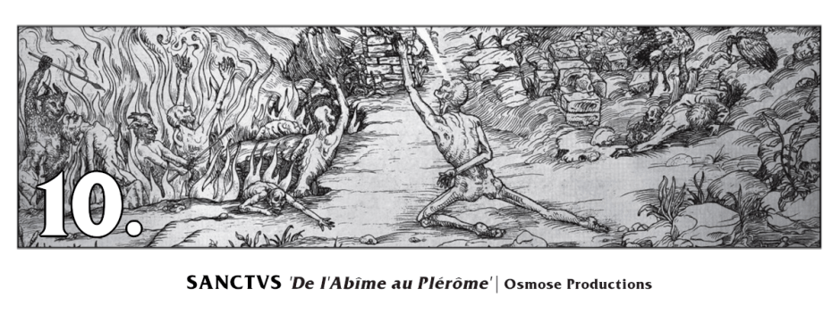 “In confrontation of the draining abyss of mortality Montréal, Quebec-based solo black metal act SANCTVS seek the spiritual satiation of omnipresent non-being, the union of all entities which transcends what fills the vessel of existence and what persists in a state of emptiness, per this highly evolved sophomore full-length album. ‘De l’Abîme au Plérôme‘ illustrates a step beyond mankind’s measure of all things, petitioning on high via brazen yet fluidly melodic black metal rants and musings which offer a leap beyond their already impassioned starting point ~seven years ago. Rather than succumb to the melodrama of cinematic black metal horizon and landscape these pieces are aggressively detailed, vocally ruptured and thoroughly intense in their at-times long winded gusting which makes for a doubly effective second LP and deeper mark carved by the artist.“