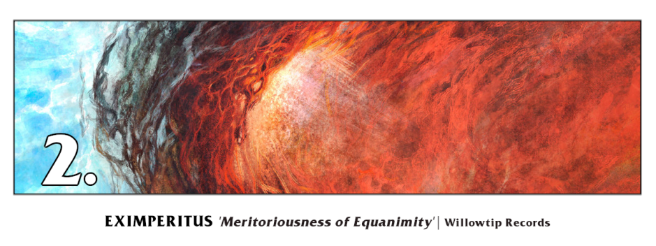 “As the rotting head of a craven new world rears its maw-level grin above the horizon in snide mockery Minsk, Belarus-based technical death metal trio EXIMPERITUS can be found channeling despair inward in due procession, enduring the passage of the coarse grit of existential dread while digesting all into self-preserving resolve on this exceptional third full-length album. Though it allows air enough to gasp out relief in between its most ruthless motioning ‘Meritoriousness of Equanimity‘ characteristically sports a succinct, high-density tunneling force from an otherworldly troupe, an alien entity hailing down meditations on resilience and the composure of a sound mind. In more practical terms we are afforded a third-level evolution of the band’s own vision on this third album, a feat which upholds their knack for technical and brutally hauled death metal given to an ever-expanding, deeper personalized ouevre.“