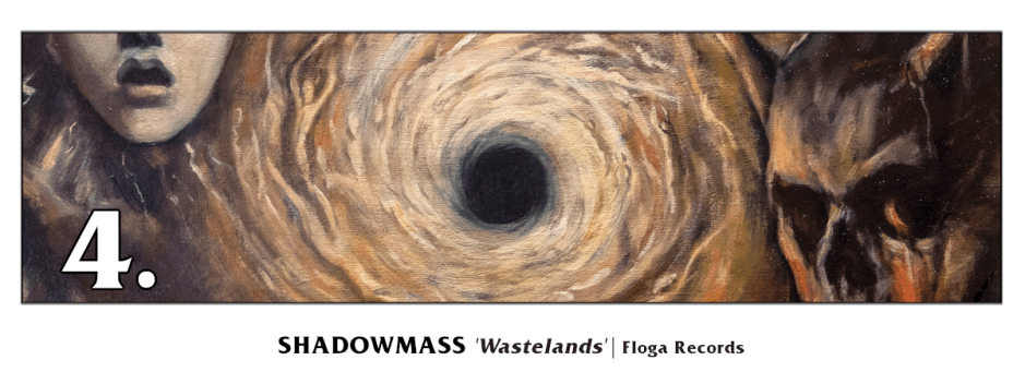 “Under the suffocating cloak of the black umbra descending upon the wastes the tiring light of humanity fades quick as the eye can trace the horizon as Athens, Greece-based blackened heavy/thrash metal trio SHADOWMASS depict the inevitable collapse from order into chaotic dispersal on this exceptional sophomore full-length album. Still righteously indebted to the classic mid-to-late 80’s thrash metal rhythmic ideal yet made whole by black, death and power metal’s suitable inspiration ‘Wastelands‘ is a fresh point of evolution for these fellowes and one which howls with dark-yet-tuneful inspiration throughout. Though it’d make perfect sense to endlessly praise their work as a hybridized old-meets-new formae in brilliant evolutionary headspace I’d endeavor to recommend this one as a memorable heavy/thrash metal album first and foremost.“