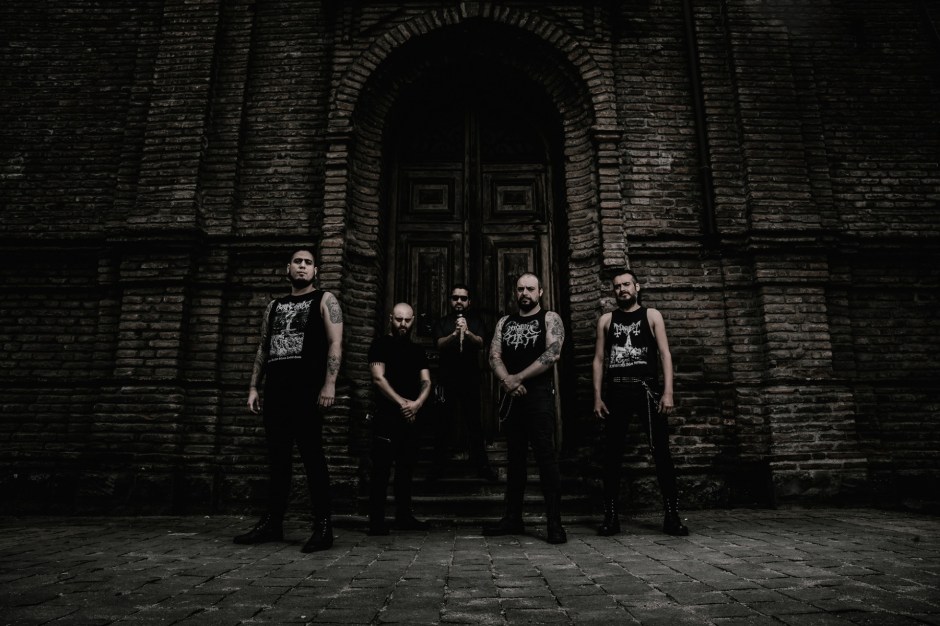 Today we have the privilege of sharing an early stream of ‘Depravatus Christianis Sacris‘ the sophomore full-length album from Santiago, Chile-based death/black metal quintet BLASART. Active since the early 2000’s and still dedicated to inverting the doctrines of Christendom into ruin these folks have long brought damaging percussive threat to their own form of militantly unholy black and death metal mission. Incorporating both ‘old school’ tenets and modern technique to their craft over these last two decades all efforts now come to a head with this second LP, the band’s most cohesive and adept point of fusion to date. Blasphemic by nature and aggressive by default the band’s work here once again secures a higher standard for a thrashing blitzkrieg of riff-and-hammer but likewise extends their range into points of steadier pace, expanding their vocabulary by exponent within the course of these tightly writ ~33 minutes. Show up for signature songs like “Venenum Immersionem Ritual” but stick around for the range shown between dramatic black metal pieces like “Mors Extrema Imminentia” and ‘old school’ thrashing blackened death volleys a la “Vocatio Sanctis Phallus”.