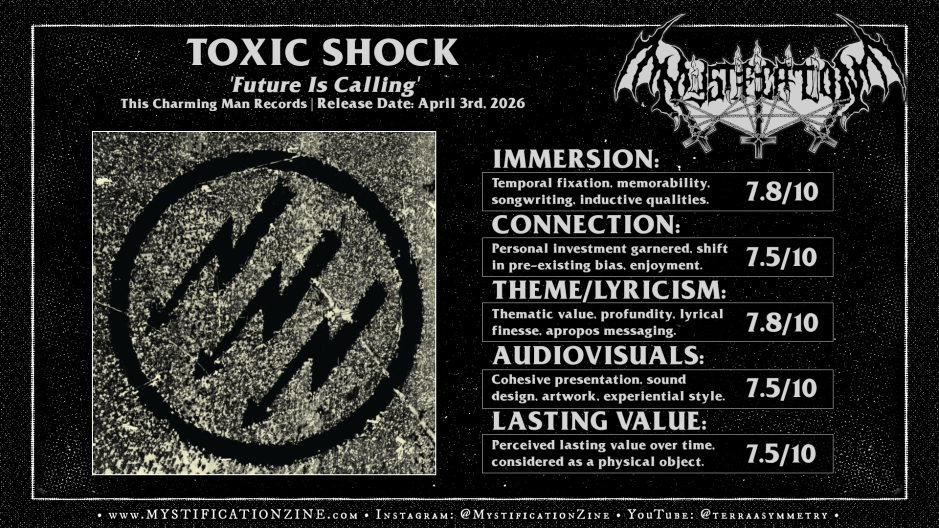 The second half of ‘Future is Calling‘ still manages to go for the throat in most respects but can’t seem to land a similarly profound bump along the road beyond maybe the faster hardcore punk clip of “Through the Poison”. Otherwise the speed metal jog and jive through “Procrastination-Frustration” almost reminded me of older Zig-Zags in how it bounced along but manages a pretty characteristic crossover thrash gait for Toxic Shock otherwise; The main two mishaps I’d point out here that put me off here included the strange pitching of Greta Thunberg‘s infamous speech on “Earth”, it is a confusing tonal moment per the effect applied, and I’d found their cover of The Gun Club‘s “Sex Beat” at the end just alright. It doesn’t quite hit that early Buzzcocks style jangling charm of the original but it is an notable choice either way.