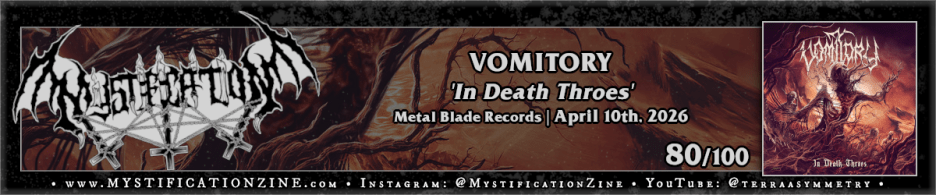 Although Karlstad, Sweden-borne death metal quartet VOMITORY have been around since 1989 most fans view their gig as second generation spawn of Swedish death metal which took on the precision and brutality of the second half of the 90’s without losing their thrashing origin. For my own taste ‘Redemption‘ (1999) and ‘Primal Massacre‘ (2004) are their most essential, defining releases which you should check out if uninitiated. Always a consistent pure death metal experience before their split there’s been no great surprise in the band’s return beyond 2018 which has now produced two full-length albums. The latest, ‘In Death Throes‘ brings in ex-Mordbrand guitarist Christian Fredriksson to the fold and promises a higher intensity experience beyond the last.