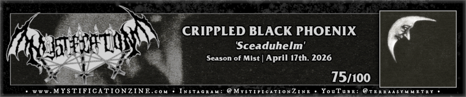 Off-putting as the bizarro children’s show meets post-rock narrative (“One Man Wall of Death”) which kicks off ‘Sceaduhelm‘ is this latest collaborative album from endtime balladeers CRIPPLED BLACK PHOENIX persists with the dark post-rock inspired gloom they’ve long been known for. The unnerving tone of the record drains on as its gothy post-metal rumblings are given to catchier yet dissociative pieces such as the sweetly set “Ravenettes” feat. vocals from Belinda Kordic or the increasingly despondent “Things Start Falling Apart” feat. the underrated Justin Storms on vocals. If you’ve been a fan of the post-2020 era of the band, especially ‘The Wolf Changes Its Fur But Not Its Nature & Horrific Honorifics Number Two(2)’, you’ll appreciate that Storms, Kordic and Ryan Patterson (Fotocrime) are the chief vocalists deployed here despite the focus here being outwardly different in some respects. Heavy use of film/tv samples, eerie synth and such fill the void otherwise yielding an experience which is tonally consistent yet a mash-up of many vectors which loses a bit of its steam in the sleepier second half of its ~66 minute run. Themes of psychic exhaustion, cruelty and the sinister aspects of nostalgia are delivered in layers rich enough to warrant sitting down with the lyrics and hunting for context though I have to admit I’d walked away appreciating the themes conveyed more than the listening experience.