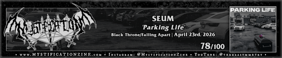 Montreal, Québec-based doom n’ bass (sludge metal) trio SEUM‘ve lost none of their bounding, neck whipping and bluesy trudge on this third full-length album, ‘Parking Life‘, but this time around they’re slinging clean vocals beyond their usual razor-throated snarl. This opens many doors for their sound while holding onto their punkish, self-built rough edges. Some of these doorways lead to absurd places and others to righteous existential dread as the band’s sense of humor extends all the way to a horrifying cover of “Always On My Mind”. The gang shouts and such on opener/title track “Parking Life” emit promise right away if you’re into the very real connection between early sludge metal and deranged hardcore punk, “Right Swipe Blues” sounds like it could’ve been on the third CKY album as they hit its main harmony, and “Labrador” has a kinda early stoner metal yawl with its clean vocals/backing harmonies inserted. Not every vocal inflection hits but generally speaking the wall-to-wall hiss of the band being subverted only boosts their ‘ready apparent charisma levels.
