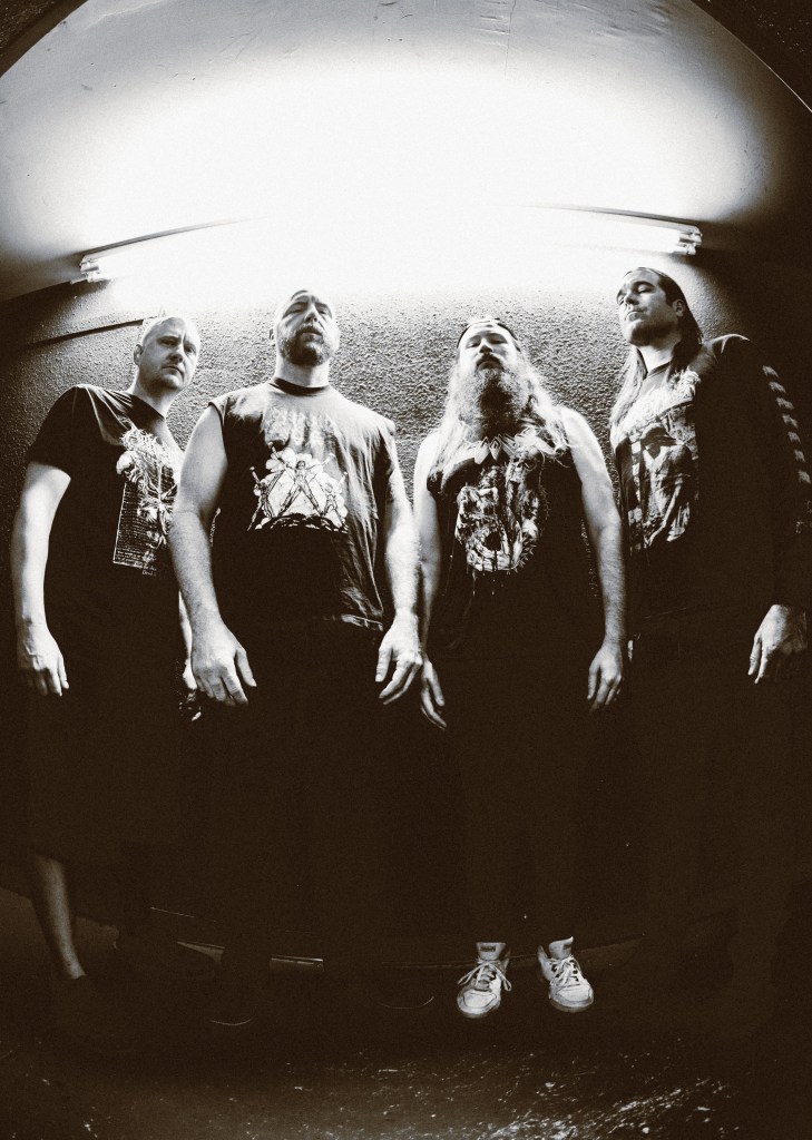Today we have the privilege of sharing an early stream of “In a House of Ill Repute” the latest single taken from Phoenix, Arizona-based death metal quartet LAGO‘s third full-length album ‘Vigil‘. Active in various configuration since 2010 and well known for their oft dissonant classics-inspired North American death metal sound these folks’ve been out of order for roughly eight years yet show no signs of rusted out ruin upon return. Though the lurching n’ stabbing movement of their work is often likened to the sludgier complexities of (initial) Tucker-era Morbid Angel alongside that same era of Gorguts and Immolation these folks’ve long sported their own moldering yet neck-whipping voice in the realm.