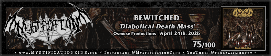 Whereas most early 90’s built black/thrash metal offerings were aligned with exaggerations of Celtic Frost and early German witching metal Umeå, Sweden-borne quartet BEWITCHED were more clearly inspired by 80’s traditional heavy metal, first wave black metal, and the rowdier ‘Ace of Spades‘ informed side of speed metal. Comprised of folks best known for Naglfar (also: Throne of Ahaz, Setherial, Ancient Wisdom et al.) their first ten years were prolific and marketed well enough that I’d recognized their records from magazine ads years before I’d sourced a copy of their first. By the time the band’s fifth album released in 2006 they weren’t catching as much motion as the blackened neothrash of the time but you’ll find some folks saying they were “ahead of their time” I guess in reference to the popularity of Midnight or similar. Two full decades later they’re back with an album that seems to reprise and reference their debut album ‘Diabolical Desecration‘ to some degree.