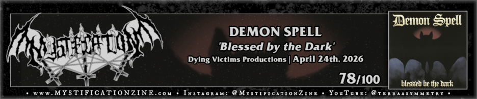 Sicilian quartet DEMON SPELL should recall the early days of Mercyful Fate most clearly as this debut full-length album opens via “As Lucifer Smiles” but they additionally touch upon later NWOBHM inspired bops and early speed metal (“Curse of the Undead”) within said context. Vocalist Federico Fano doesn’t necessarily have King Diamond‘s pipes or cadence but the effect is close enough as layered arrangements and a fair amount of reverb give certain songs a Satan-esque wail I’d enjoyed. If you are looking for a more direct likeness to the infamous Danes on ‘Blessed be the Dark‘ I’d point to “The Tolling” coming closer than most but this type of song trades off with pieces (“Dive the Hellfire”) which any Metal Massacre-era collector or general US power metal fan would enjoy just as well. Though I’d wanted to cover this one in more depth there was very little to say beyond “Great 80’s heavy metal inspired fare.“