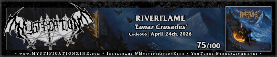 Black metal side-project RIVERFLAME bring admirable exuberance and high-dramatic atmosphere to the ‘epic’ melodic niche on this well-concieved debut full-length album. Though folks will want to point to Summoning for a “vibes-based” reference outright this is misguided as the style and headspace conveyed here is uptempo melodic black metal which has more to do with pagan black metal and lead-driven folk metal, such as Havukruunu or something deeply obscure like Shambless. Whatever reference pulls you in you’ll find an intense cinematic scope applied to most of these pieces while the main point of focus is primarily a number of shredding leads, some neoclassical inspired guitar work and such. Their engine is running hot and the actual sound of ‘Lunar Crusades‘ is sharp though I didn’t find these songs substantive beyond their striding n’ shredding roll through.