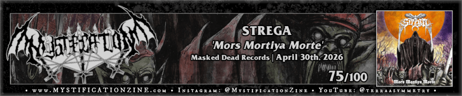 Italian quintet STREGA return for a second EP release and this time their alchemists have brewed a three-song MCD seeking to splice epic tonality onto their oddly upbeat rasped and keys-tapping heavy metal inspired sound. Though you’ve likely heard a thousand blackened heavy metal bands to date ‘Mors Mortiys Morte‘ bears its own odd personage thanks to its unique keyboard/synth deployment (“Inna! Ulthar!” even has a solo) and otherwise ‘epic’ and jaunty movement through these songs. Imagine a King Diamond wail over an (older) Black Magick SS lead chorus and you’ll have some sense for the havoc within the title track. To make things even more interesting there is some manner of dark high fantasy narrative/world building happening here which helps to bring a theme to an otherwise unsteady concoction of proggy “Maiden-black” forms. Title track is the most cohesive piece here, the other two have their shaky disconnected moments but overall theirs is a unique enough meld.